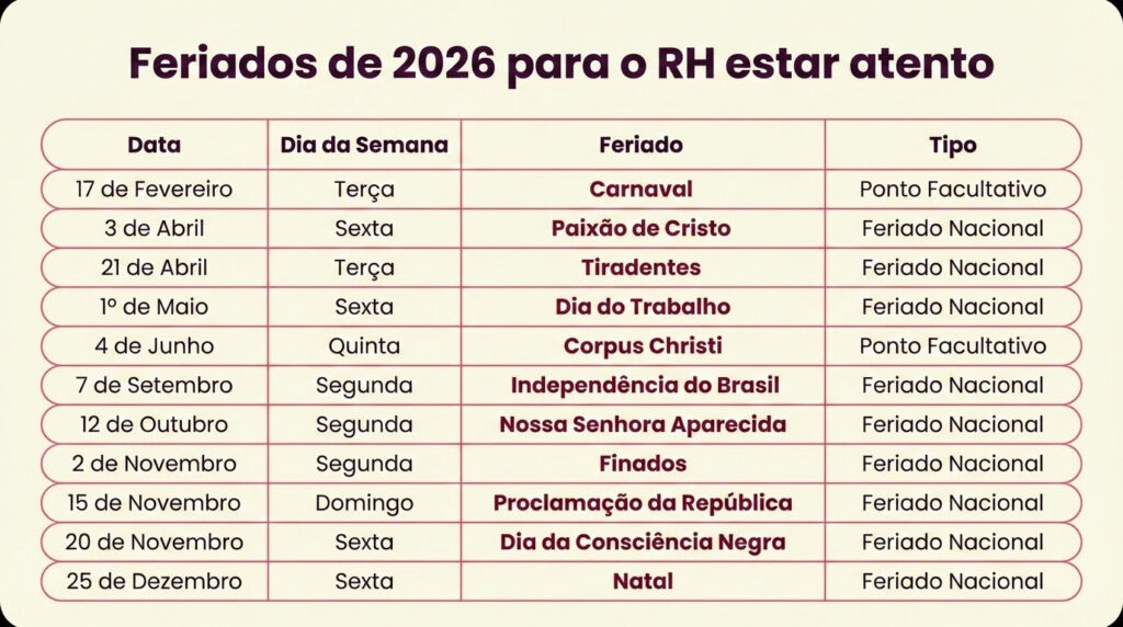 Gerenciar o calendário de 2026 exige conhecimento da legislação e empatia com a equipe. Quando o RH se antecipa, a empresa ganha em segurança jurídica e o colaborador ganha em qualidade de vida.